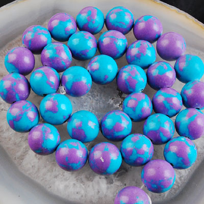 Голубой и синий материал разных тонов иногда измельчали в порошок и затем прессовали вместе с порошком или крошкой натуральной бирюзы, добиваясь «природной» неоднородности камня.