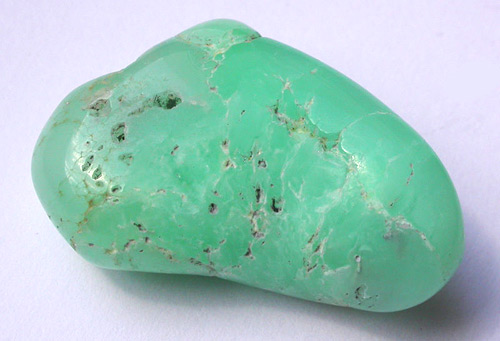 2. Хризопраз яблочно-зеленый, однородный. Первый сорт. Здесь хризопразы уже просвечивают не более чем через 2 см. В камне могут присутствовать белесые и не просвечиваемые участки. Структура по прежнему однородная, без рисунка.