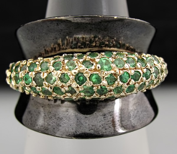 Кольцо из черненого стерлингового серебра 925 пробы с цаворитами гранатами. Вес — 14,4 гр. Площадка кольца — 26×25 мм. Выборочное золочение.