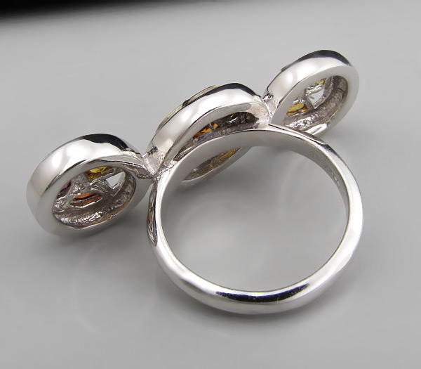 Кольцо из стерлингового серебра 925 пробы с разноцветными сапфирами, цаворитами, родолитами и мозамбикскими гранатами. Вес кольца — 8,6 гр. Площадка кольца — 38×14 мм. Выборочное золочение.