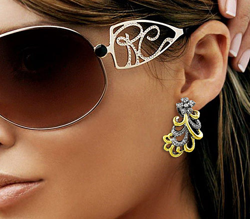 Серьги из черненого стерлингового серебра 925 пробы с бесцветными сапфирами. Вес — 21,4 гр. Размер серег — 41×26 мм. Выборочное золочение.