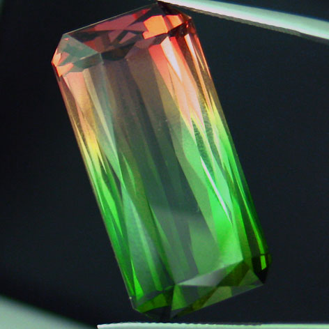Полицветные турмалины окрашены в два, три или больше цветов. Самая известная комбинация — арбузный турмалин, в котором кристалл имеет розовый центр и зеленый край, поэтому камень в поперечном разрезе напоминает арбуз. Некоторые кристаллы имеют ярко выраженный контраст, в то время, как в других есть только отличие в оттенках, создающее более тонкий эффект (так называемый эффект Уссамбара). Эти многоцветные турмалины гранятся багетной или октагональной ступенчатой огранкой, чтобы во всей красе продемонстрировать комбинацию оттенков. Лучшие кристаллы этого вида находят в Южной и Восточной Африке, в Бразилии.