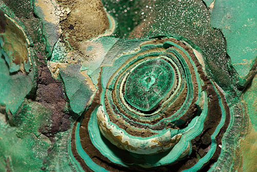 Сейчас основным источником малахита для ювелирных и отделочных работ является Демократическая Республика Конго. Характерной особенностью африканского малахита являются мелкие правильные концентрические кольца (в отличие от колец неправильной формы у уральского малахита) с более контрастным чередованием светлых и темных зон.