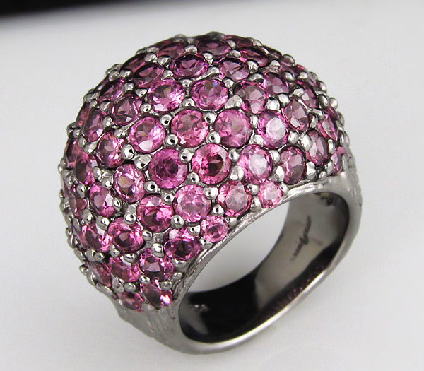 Кольцо из стерлингового серебра 925 пробы с родолитами гранатами. Вес кольца — 18,2 гр. Площадка кольца — 27×22 мм.
