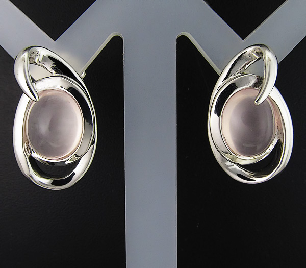 Серьги с кабошонами розового кварца.Серебро 925, Родирование Инкрустация: Кварц Вес изделия: 10,4 грамм Размер: 21×13 мм