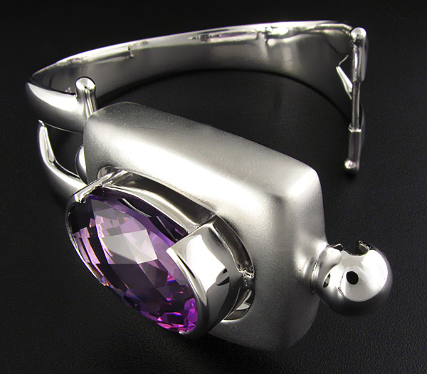 Вашему вниманию предлагается массивный браслет из стерлингового серебра (925 проба) с превосходным крупным уругвайским аметистом на матированной площадке! Размеры вставки 25 х 17 мм. Длина внутренней окружности 165 мм, ширина 29 мм. Вес изделия 83,4 г.