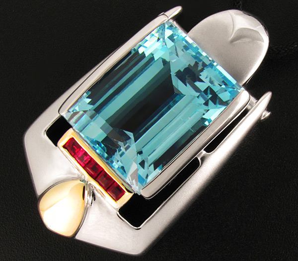 Кулон с крупным голубым топазом авторской огранки и рубинами!