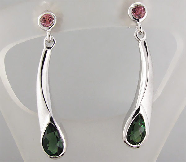 Вашему вниманию предлагаются серьги из стерлингового серебра (925 проба) с хромово-зелеными и розовыми турмалинами! Размеры вставок 3 мм и 8 х 4 . Площадка серег 37 х 8 мм. Вес пары 7,3 г.