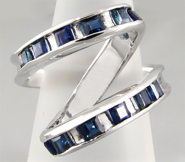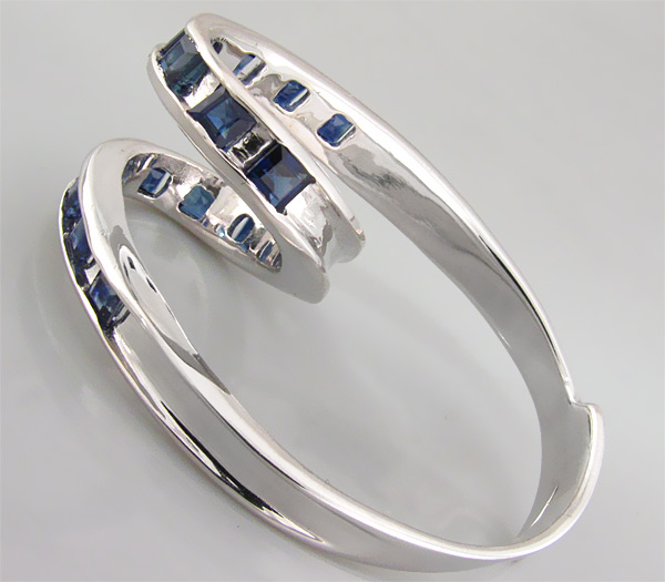 Вашему вниманию предлагается экстравагантное кольцо-серпантин из стерлингового серебра (925 проба) с синими сапфирами! Размеры вставок 3 х 2 мм. Площадка 19 х 19 мм, высота 16 мм. Вес изделия 8,2 г. Размер 18,25.