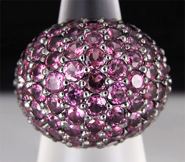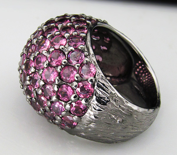Кольцо из стерлингового серебра 925 пробы с родолитами гранатами. Вес кольца — 18,2 гр. Площадка кольца — 27×22 мм.