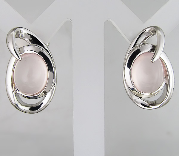 Серьги с кабошонами розового кварца.Серебро 925, Родирование Инкрустация: Кварц Вес изделия: 10,4 грамм Размер: 21×13 мм