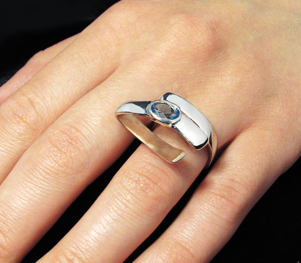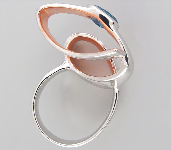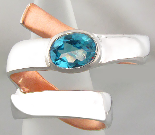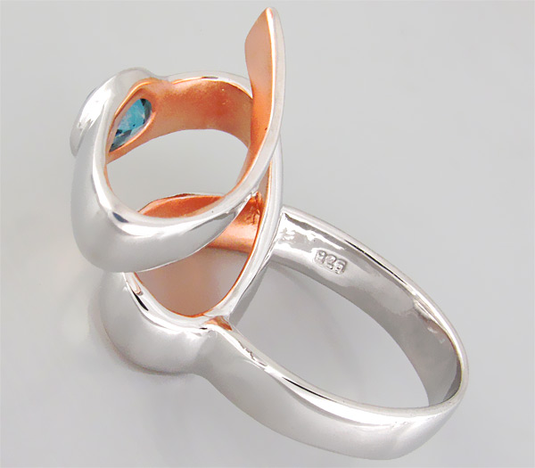 Вашему вниманию предлагается кольцо-спираль из стерлингового серебра (925 проба) с ярким голубым топазом! Внутрення часть кольца частично позолочена. Размеры вставки 7 х 5 мм. Площадка 24 х 23 мм, высота 15 мм. Вес изделия 10,2 г. Размер 17,25.