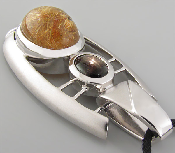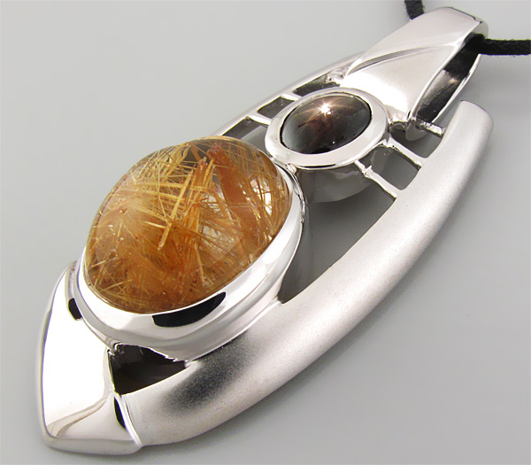 Вашему вниманию предлагается кулон из стерлингового серебра (925 проба) с крупным кабошоном золотистого рутилового кварца и звездчатым сапфиром! Изделие частично матировано. Площадка кулона 59 х 25 мм. Вес 23,3 г. Ниже приводятся размеры вставок.