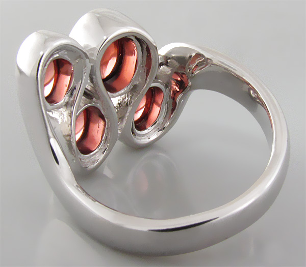 Вашему вниманию предлагается кольцо из стерлингового серебра (925 проба) с кабошонами красных турмалинов! Размеры вставок 5 х 3 мм, 6 х 4 мм и 7 х 5 мм. Площадка 18 х 18 мм, высота 6 мм. Вес изделия 9,2 г. Размер 17,75.