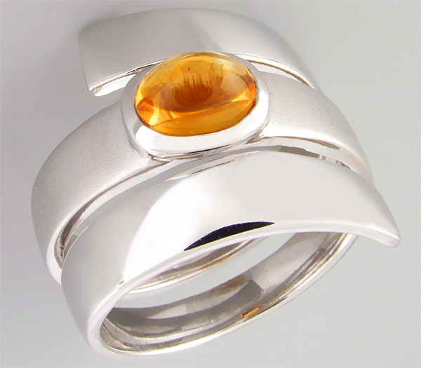 Вашему вниманию предлагается кольцо-спираль из стерлингового серебра (925 проба) с кабошоном золотистого цитрина! Размеры вставки 7 х 5 мм. Ширина площадки 17 мм, высота 6 мм. Вес изделия 10,6 г. Размер 20.